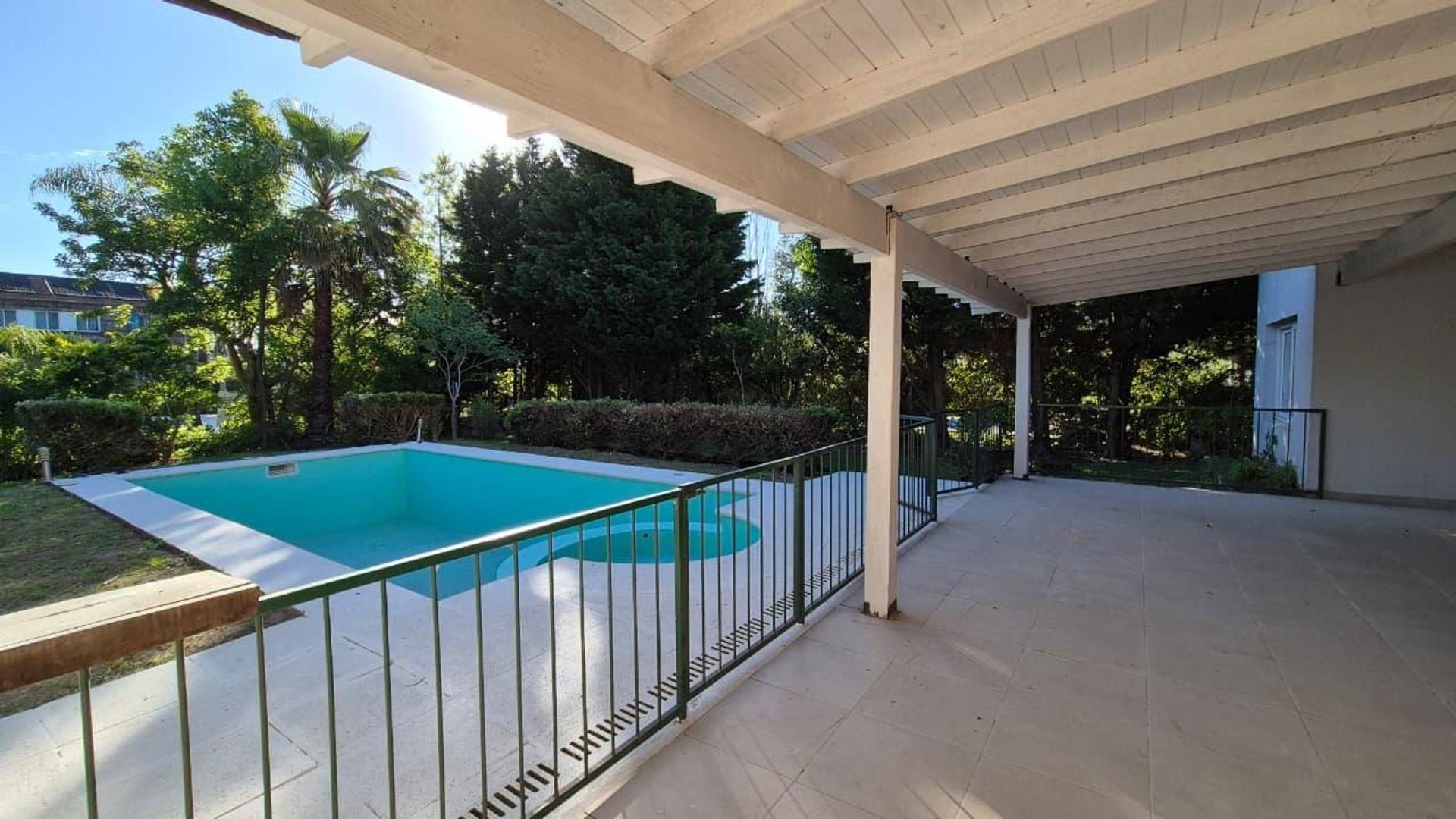 Gran patio parquizado en el fondo con árboles y plantas de diferentes clases como olivos, arbustos, juegos de madera, fogones más una pileta amplia de 7,00 metros de largo x 3,10 metros de ancho construida de material con el perímetro revestido de ladrillos y equipo portátil.