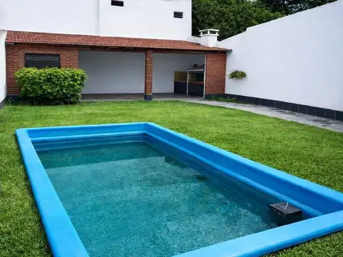 S/ lote de 10x33 y 234 mts cubiertos desarrollados de la siguiente manera: planta baja: liv-com de 7,85 x 4 con pisos de porcelanato, toil de recepción con ducha, cocina comedor diario de 3,45 x 3,60 con pisos de porcelanato y muebles bajo y alto mesada , estar / family de 3,60 x 4,49 con pisos de porcelanato y con hogar a leña, lavadero separado, dependencia y baño de servicio, galeria semicubieta de 2,40 x 4,10, fondo /jardin de 10x 14 , pileta c/hidromasajes de 6x 3 , quincho con parrilla , garage cubierto para dos autos. Planta alta: escalera revestida en madera, hall de distribución de 2,50 x 2 , dormitorio en suite de 4,10 x 4 con vestidor de 2,20 x 3 y baño c/bañera con hidromasajes, de 2,30x2 , salida a balcón terraza , baño secundario de 2,20 x 2 y dormitorio con placards de 3,06 x 3,50 , toda la planta alta tiene piso de parquet .