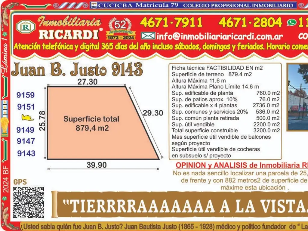 Ideal LAVADERO DE AUTOS., VIVERO, CONCESIONARIO OFICIAL 0 Km de RODADOS o UTILITARIOS o bien DESARROLLISTAS dispuestos a seguir transformando la Avda. JUAN B JUSTO que últimamente con el cambio del Código de edificación ha crecido y mucho de la mano de la llegada del eficiente METROBUS que realmente es un antes y después.
