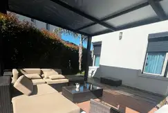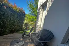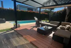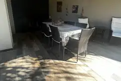En la parte exterior posee un patio con vista al frente, al que se puede acceder desde el living comedor. Galería con parrilla. Pérgola de hierro junto a la piscina con un juego de living de exterior.