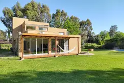 Calefacción central por losa radiante con caldera, 4 aires frío calor, tanque 1000 lts con bomba presurizadora, hogar a leña tipo Tromen, riego por aspersión. Ventanas Módena con dvh
