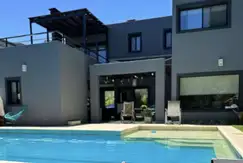 Cuenta con un importante Living comedor en la planta baja con hogar a leña y amplios ventanales al frente y contrafrente con hermosa vista al contrafrente a la piscina y al jardín. Toilette de recepción de amplias dimensiones. Cocina con desayunador con muebles, artefactos y griferías de excelente calidad y diseño. Habitación de servicio con baño completo. Lavadero independiente. Amplia parrilla con mesada de trabajo enfrentada y con pileta de agua caliente y fría, pérgola con toldo automatizado a control remoto, piscina con hidromasaje e iluminación con sol toda la tarde por su orientación. Cerco vivo, parquización y riego por aspersión. La piscina tiene preparada la conexión para la instalación de un calefactor para el agua.