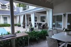 Se ingresa por entrada principal, a hall de recepcion que da lugar a ventanal con hermosa vista a pileta y parque con palmera