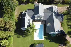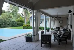 DEPENDENCIA DE HUESPEDES totalmente independiente , en dos plantas con cocina , comedor , living , ventanales a pileta y parque