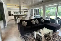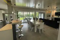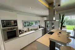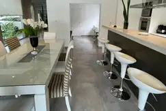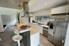 -Planta Baja: Al ingresar posee amplio living comedor con cantidad de ventanales aportando importante luminosidad. Cocina equipada con bajo mesada, alacenas, campana extractora, equipo de cocina y barra desayunadora.
