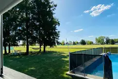 Parque arbolado y Pileta de 10x4 con cerco perimetral. Vista abierta al fondo a la cancha de Polo.