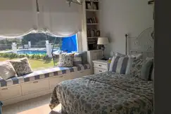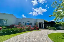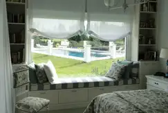 Espectacular casa en estado impecable y super funcional en una sola planta, con 6 habitaciones y 6 baños, toilette, cocina amplia con una isla y donde se puede también sentarse a desayunar, comedor diario con una mesa con sillas y banco, living-comedor, lavadero, play con camas, dependencia, varias galerías amplias, quincho con cerramiento de vidrio despegable, parrilla, pileta con solarium cercada para grandes y un sector para niños, juegos para niños en el jardín (tobogán, hamacas, etc.), jardín divino con una muy linda parquización y escalonado, riego automático, excelente iluminación del jardín.