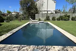 Hermoso jardín con pileta, amplia galería con parrilla.