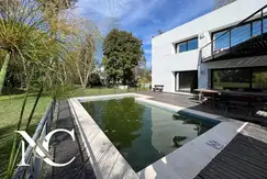 Moderna Casa con gran proyecto arquitectónico, donde se encuentra bien definido la zona vivencial y la zona de descanso, separada en dos bloques con independencia absoluta en cada zona, conectadas entre si por una pasarela aérea de vidrio transitable.A solo 150 mts del Club House y todas las actividades del country.