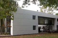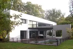 Gran casa en Abril Club de Campo de construcción moderna, con tres dormitorios, huéspedes y piscina. Consta de dos blocks divididos por un hermoso pasadizo vidriado, con vista panorámica al exterior frontal y trasero de la casa.