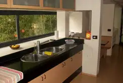 Planta Alta: Amplio living comedor con hogar, toilette, cocina comedor diario, muebles completos, cocina con mesada negra, despensa.