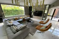 Entre las características destacadas de esta casa se incluyen calefacción central, pisos de porcelanato simil mármol, aberturas DVH, cortinas automatizadas y sistema de riego por aspersión.