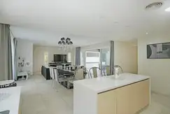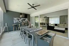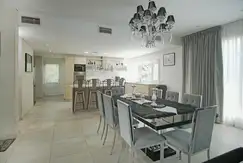 En cuanto a la distribución de la casa, encontrarás un amplio espacio de cocina comedor integrado, con una cocina equipada con lavavajillas, horno y cocina de primeras marcas. Esta área es perfecta para compartir en familia o con amigos.El living comedor está amoblado con muebles de la reconocida marca Fontenla, y la cocina cuenta con electrodomésticos de calidad como lavavajillas, mobiliario Johnson, horno convector y heladera doble hoja LG. Todo está en excelente estado, casi a estrenar.