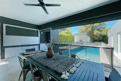 En el exterior , la amplia galeria techada cuenta con una parrilla, perfecto para organizar reuniones y disfrutar de deliciosos asados. Además, hay una piscina de 9x3 metros, ideal para refrescarse en los días calurosos de verano.También se destaca un patio con un cuarto de baño y una cocina adicional, que resulta muy práctico cuando se reciben invitados.