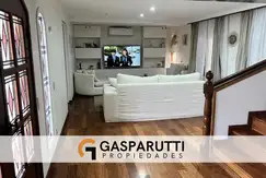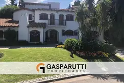 En el exterior tiene un hermoso jardín de amplias dimensiones, pileta recubierta con venecitas, solarium y jacuzzi. Riego por aspersión.