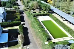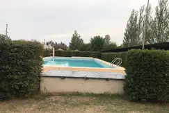 Importante pileta del complejo de uso comun, cerco vivo en todo el predio, acceso con porton automatico, calle asfaltada hasta ingreso de predio y mejorado de piedra en calles internas del barrio.