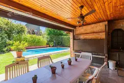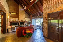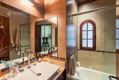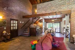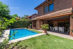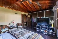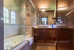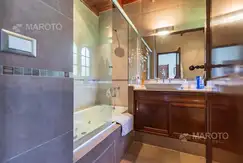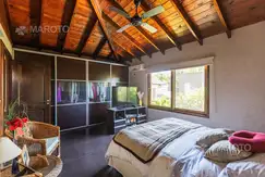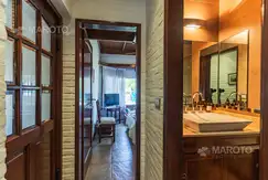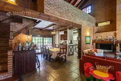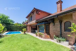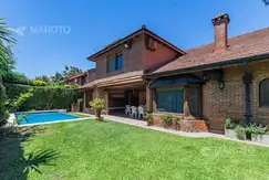 CASA EN VENTA EN LOS HORNEROS C.C. - MAROTO PROPIEDADES - Hermoso chalet de estilo con doble pared con importantes detalles en madera de excelente calidad constructiva . Gran Recepción , Living comedor con hogar en doble altura . Comedor amplio . Cocina independiente pero con conexión al living con grandes mesadas . Lavadero independiente con entrada cubierta desde cochera cubierta . Dependencia de servicio con baño o escritorio. área intima en planta baja : dormitorio en suite con hogar y hermosa vista al parque con baño completo . Dos dormitorios con placar y baño compartimentado . En primer piso : Otro dormitorio en suite con hermosa vista al parque y a arboles añejos con baño muy amplio con hidro masaje . Carpintería DVH . Gran family o lugar de trabajo o salon de juegos . Toda la casa cuenta con calefacción por losa radiante y carpintería de madera con vidrios repartidos . Gran galería cubierta con parrilla . Hermoso parque con arboles añejos . Piscina con playa húmeda y solárium . Impecable estado general . OPORTUNIDAD -