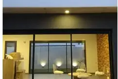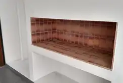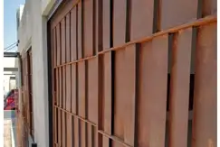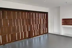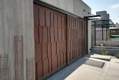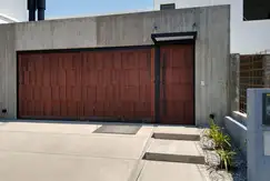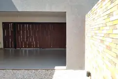 Cochera doble + espacio para moto y bicicletas, cubierta y cerrada, portones de diseño metálicos corredizos-Quincho + Asador