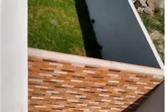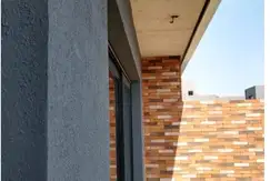 Materiales combinados en hormigón visto, ladrillo visto, hierro oxidado, patios y frente parquizados con vegetales y limonero