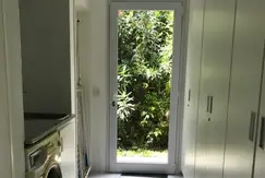 Cocina abierta con moderna isla e importante ventana hacia el frente, lavadero con amplia zona de guardado y dormitorio de servicio o escritorio.