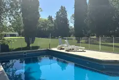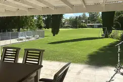 Galeria, parrilla y pileta en un costado dejando un amplio parque.