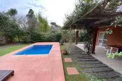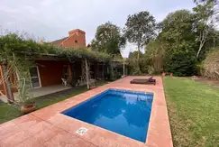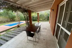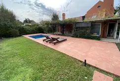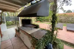 En el frente cuenta con estacionamiento para tres vehículos, uno de ellos cubierto y en la parte posterior una amplia galería con una mesa para 12 personas, parrilla, solárium con reposeras y una piscina iluminada con hidromasaje . El jardín cuenta con riego automático por aspersión.