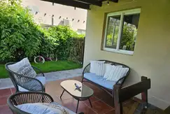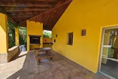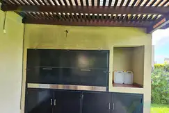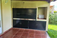 Exterior: Amplia galería con parrilla, mesada de marmol y cerramientos de hierro con varios espacios de guardado.