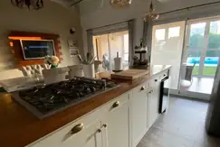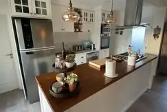 Amplio Living-Comedor, Cocina integrada con desayunador, mesadas de silestone blanco