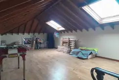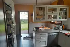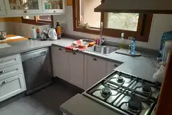 Dormitorio principal, con aire acondicionado, vestidor y baño en suite con pequeña galería independiente. 2 Dormitorios con placard y aire acondicionado. Baño compartimentado completo con bañera y mampara. Escritorio. Toilette. Cocina amueblada con comedor diario, amplio living comedor, sala de estar y playroom en planta alta con pisos flotantes. Galería trasera con columnas y pisos de ladrillo. Cochera cubierta para dos vehículos. Contiguo anexada a la casa, quincho con parrilla y mesada revestida en piedra; y dependencia de servicio.