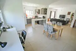 LIVING COMEDOR, COCINA CON GRAN MESADA, MUEBLES Y GRIFERIA COMPLETA, CON SALIDA A GALERIA CON PARRILLA, JARDIN AL FONDO AMPLIO, IDEAL PARA PISCINA.