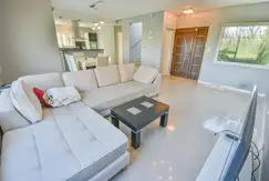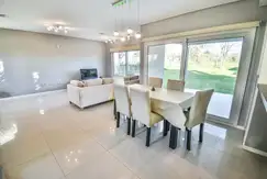 un gran ambiente integrado que funciona como living comedor, separado por la barra desayunador de