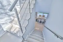 porcellanato pulido, y la galería y el hall de entrada de porcellanato simil mármol en placas grandes.