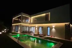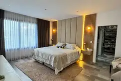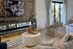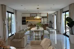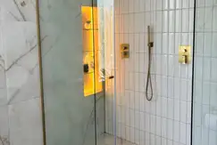 - Griferias y arañas doradas importadas, luces led empotradas en todo el alrededor de la casa y gargantas, riego automático, ablandador de agua, losa radiante, aires acondicionados frío- calor en todos los ambientes, cocina totalmente equipada.