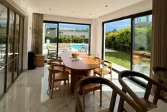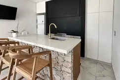 - Cuenta con living-comedor, cocina completamente integrada con detalles de categoría, baño, quincho integrado con cerramiento plegable, lavadero amplio, habitación con placard en PB y baño completo. Hermosa piscina con cascada y solárium, sector de fogonero. Cuarto de guardado y ducha exterior