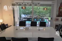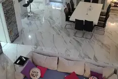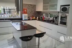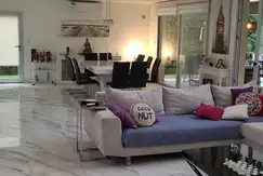 En su interior, el amplio living comedor de concepto abierto está diseñado para maximizar la luz y el espacio, con pisos de porcelanato de gran calidad que aportan elegancia y frescura al ambiente. Los ventanales de piso a techo permiten disfrutar de vistas al jardín, y la conexión directa con el comedor otorga una perfecta integración para la vida social y familiar.