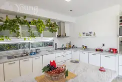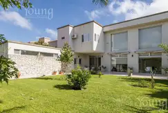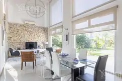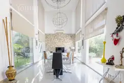 Living Comedor con imponente techo en doble altura, completamente vidriado, con vista abierta al parque trasero y al frente de la casa también con jardín.