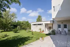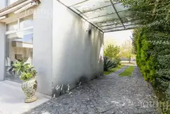 Tiene cochera semi cubierta para 2 autos, y garage pasante para 3 autos más.