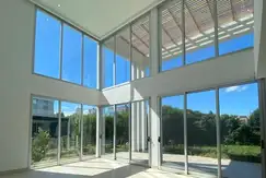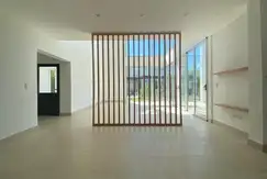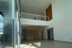 Cuando se ingresa por la entrada principal nos encontramos con un living-comedor con un techo en doble altura todo con ventanales brindándole a la casa una iluminación natural, con vista a la galería, parque y piscina (próxima a construirse)