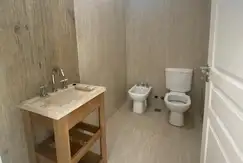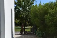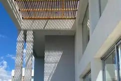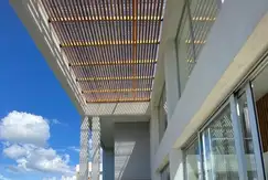 En el exterior se encuentra una galería con techo doble altura como el del living, con parrilla y una isla. Continuado se encuentra un toilette y un lugar de guardado.