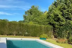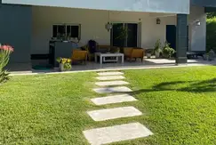 La pileta es de 4 x 8 recubierta de venecitas. El parque con grama bahiana y riego automático.-