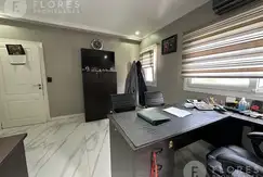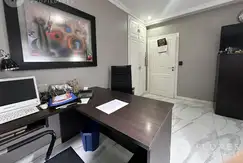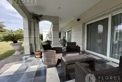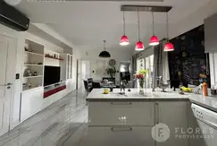 Al ingresar, encontrará un amplio hall con toilette de recepción y un luminoso escritorio a la izquierda. El living comedor se extiende en forma de "L", con grandes ventanales que inundan el espacio de luz natural y ofrecen una vista encantadora al jardín. La cocina, equipada con una extensa mesada, se complementa con un comedor diario y una despensa. Además, cuenta con un lavadero y una habitación de servicio completa e independiente.