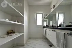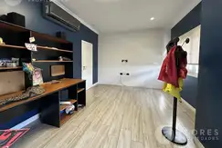 En la planta alta, la propiedad dispone de cuatro dormitorios, incluyendo una suite principal con dos vestidores, baño compartimentado con doble bacha, hidromasaje, y un balcón con vistas al jardín. La suite secundaria ofrece un gran vestidor y acceso a un balcón terraza. Los otros dos dormitorios, ambos con placard, comparten un baño completo.