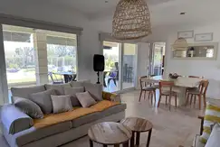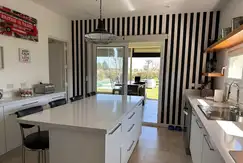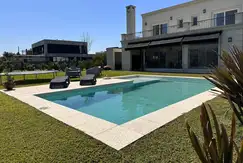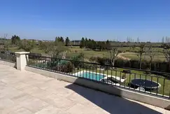 Casa estilo frances sobre lote con vista al golf. En planta baja cuenta con hall de recepcion, living comedor con hogar, toilette, escritorio (o quinto dormitorio), cocina con isla con amoblamientos completos, lavadero, dependencia de servicio con baño, galeria con parrilla y baño.
