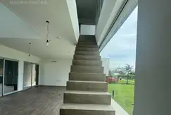 En planta baja, cocina comedor con isla, living comedor integrados, toilette de recepcion, galeria con parrilla, amplio parque con piscina.