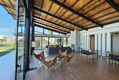 acondicionados split en cada ambiente. Parrilla completa con herrería interior en hierro redondo + leñero, incluye puertas sobre y bajo parrilla en chapa; Terminación exterior en hormigón visto combinado con revestimiento simil madera y revestimiento plástico tarquini color.