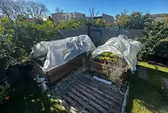 Huerta automatizada y fogonero externo con antiguedades de decoración. Sistema de iluminación nocturna para todo el perímetro.