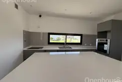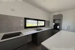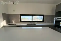 -COCINA: Muebles de diseño a medida en mdf color gris claro. Anafe vitroceramico y horno. Bacha jonhson Quadra Q71 con accesorios y griferia moderna fv. Marmol color blanco paloma tipo silestone.