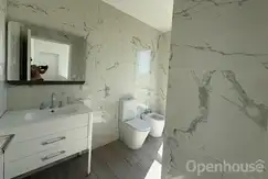 BAñOS: Revestimiento porcelanato marca San Lorenzo simil Marmol Carrara piso y paredes. Sanitarios linea Ferrum Marina o similar, bañera y Vanitory 1era marca. Griferias linea cuadrada 1era marca.