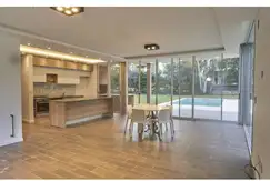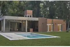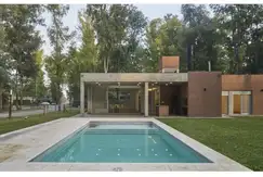 Características del inmueble: Mampostería tradicional con revoque texturado color exterior . Pisos de porcelanato simil madera. Cielorrasos de yeso con iluminación led empotrada e instalada. Muebles de cocina y lavadero Lema excelente calidad, mesadas de granito negro. Anafe y horno Ariston, extractor Cata. Termotanque Rheem 160 Alta Potencia. Puertas placa de madera lustrada a medida. Puerta principal de cedro macizo, lustrado. Carpintería de aluminio A30 y Modena anodizado, cortinas de enrollar de aluminio eléctricas en dormitorios. Vidrios laminados. Gargantas previstas para instalación de cortinas roller eléctricas. Baños con pisos y revestimientos de porcelanato, grifería FV y losa Ferrum. Tanques de reserva y de bombeo de 1000tls. Mesadas de mármol crema marfil. Sistema de calefacción por radiadores, se entrega la preinstalación (excluye radiadores y caldera).Preinstalación para cuatro aires acondicionados. Jardín con césped en panes y riego por aspersión automatizado. Iluminación exterior por jabalinas led. Perforación y bomba instalados para piscina y riego. Cerco perimetral romboidal.