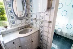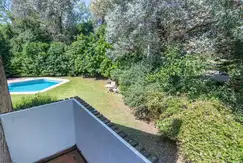Amplio jardín al frente y gran jardín al contrafrente con una importante piscina a la que le da el sol todo el día. Muy linda arboleda. Parrilla. Lavadero.